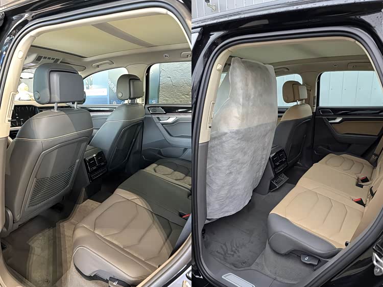 空间和尺寸方面,4913毫米车长、2899毫米轴距,放在当下不算夸张,但胜在比例协调。它不是那种用尺寸制造压迫感的车型,而是坐进去、开起来都很从容。后排空间足够家庭使用,但不会给人“行政级”的夸张感,这也是途锐一贯的取向。