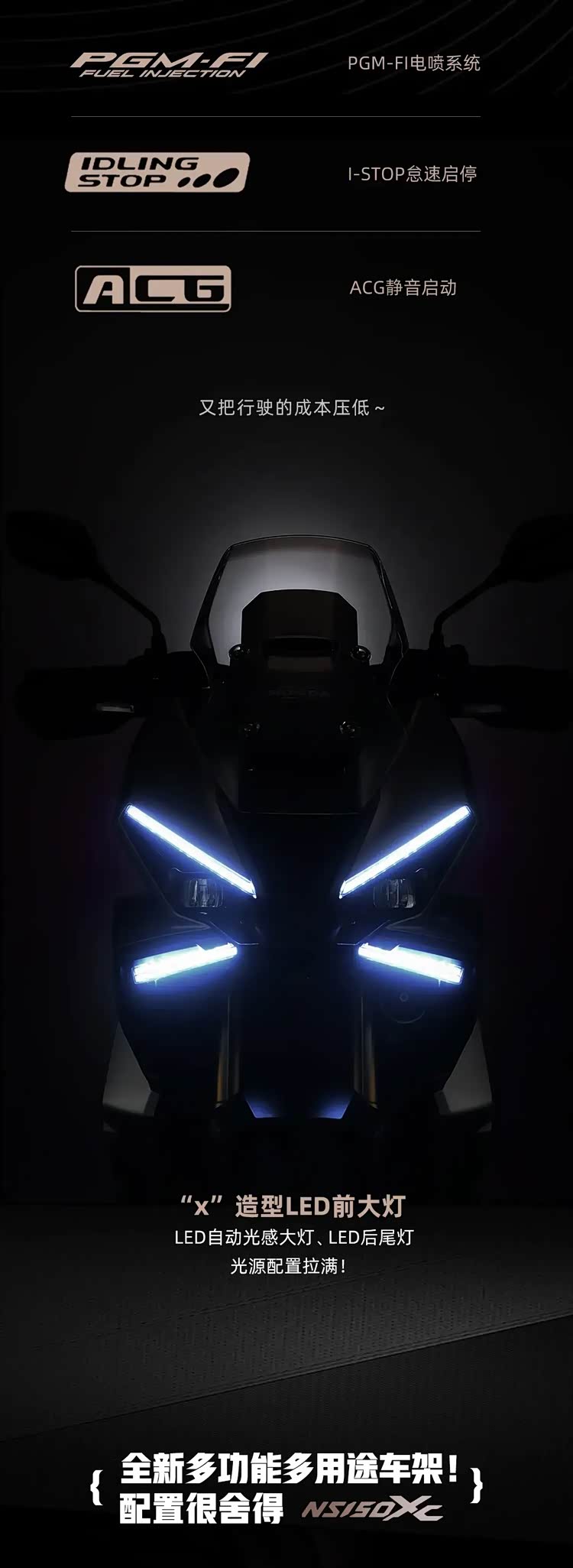 这款车的出现填补了本田在国内小排量ADV踏板细分市场的空白。它面向的是那些有轻度摩旅需求,又不愿放弃踏板车便利性的用户,同时还追求高品质和舒适性。与纯粹的城市通勤踏板不同,NS150XC更强调个性和玩乐属性,试图在实用性和趣味性之间找到平衡。