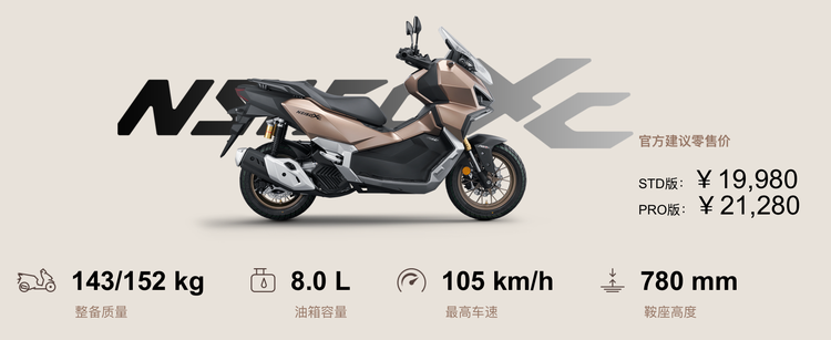新大洲本田NS150XC是该品牌推出的第一款跨界ADV踏板车。标准版售价19980元,Pro版21280元。这个价格在150cc踏板车市场属于高端区间,作为对比,五羊本田的NWG150高配版售价17180元,排量更大的PCX160售价22980元。