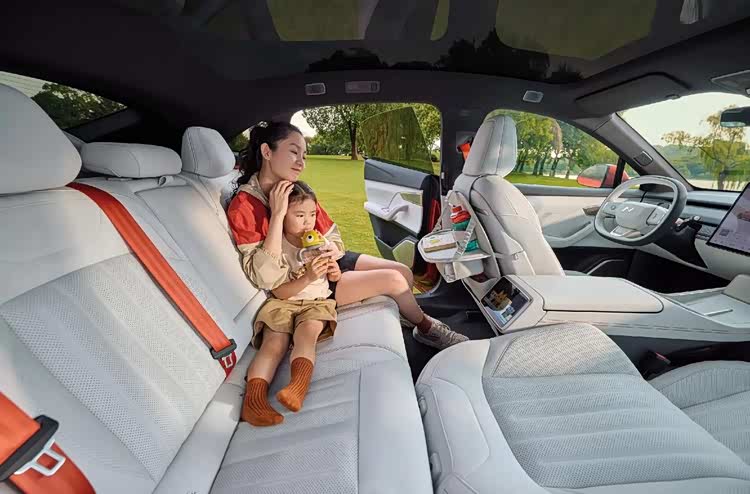 乐道L60内饰与特斯拉相近,同样都采用了极简风格的设计,后备箱储物空间+下方的隐藏式收纳空间,满足了家庭日常的出行需要。值得一提的是,乐道L60的内饰采用母婴级健康材质,并且获得了OEKO - TEX STANDARD 100一级认证,对小孩和孕妇的家庭更友好。