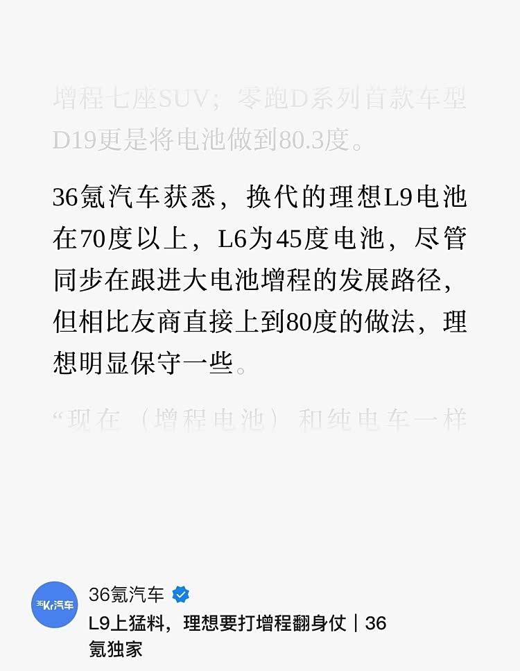 昨天,知名媒体《36氪》发布了一篇文章称,理想正在筹备2026年L系列大改款,其中L9和L6的电池配置已基本确定。