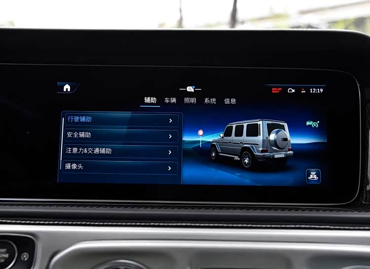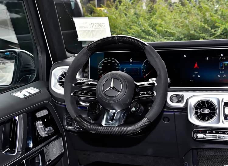 坐进驾驶舱,则是另一番天地。双12.3英寸大联屏和炫目的氛围灯,告诉你它并非老古董。但真正点燃驾驶者激情的,是那个带翻毛皮和碳纤维的AMG方向盘,以及中控台上那三把标志性的差速锁按键。这里粗犷与精密共存,豪华与野性交织。18个喇叭的柏林之声环绕立体声,则是为这份狂野旅途配上的顶级交响乐。它精致,但绝不柔弱。