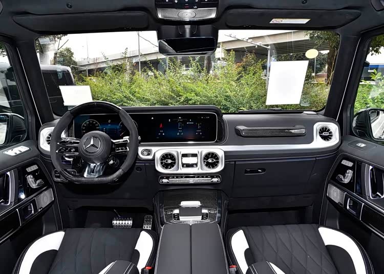 首先你得明白,G 63从来就不是一台用来讲“性价比”的车。它卖的第一个东西,就是那张几十年不变、却越看越有味的“方盒子”脸。这次新款熊猫配色,白色车身配黑色点缀,经典中透着一股酷劲。圆形大灯、机械门把手、外挂备胎,每一个细节都在诉说着与这个圆滑时代格格不入的硬朗态度。开它上路,收获的注目礼远超任何超跑,它带来的是一种“我就是我,无需解释”的身份感和底气。这份独一无二的视觉霸权,是它价值的第一块基石。