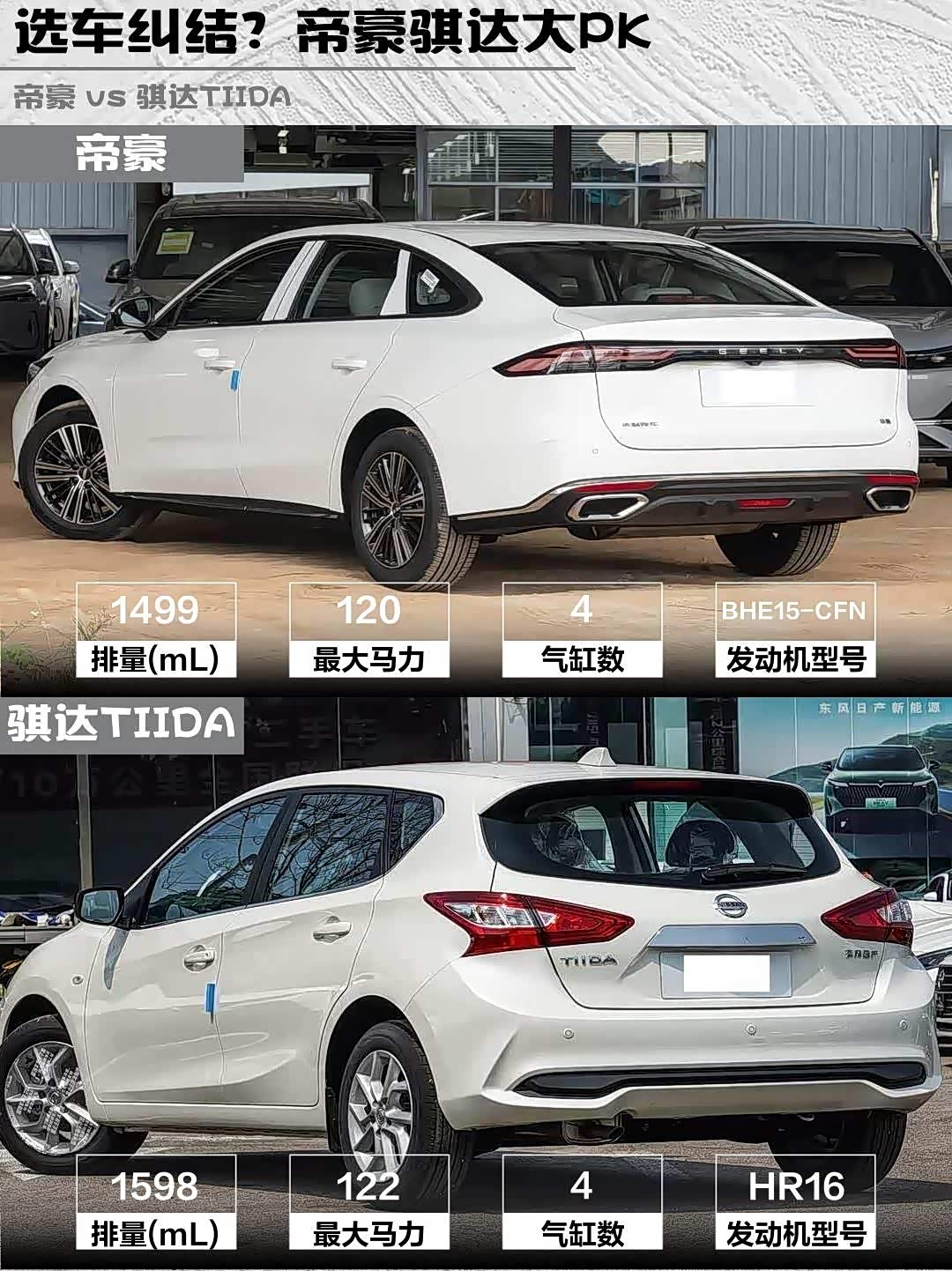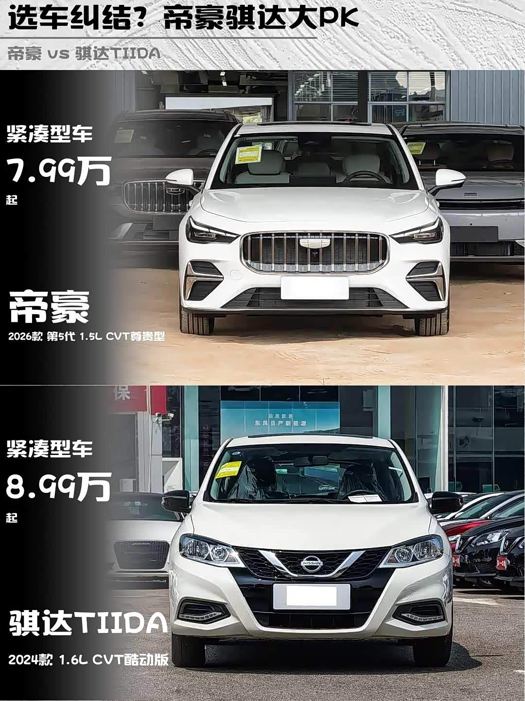 车家号·0浏览·2026-01-22 08:25 · 北京最近在选车的小伙伴看过来!8万级家轿怎么选?今天深度对比2026款帝豪第5代1.5L CVT尊贵型和2024款 骐达TIIDA(参数|询价) 1.6L CVT酷动版,实测干货直接上!🔥