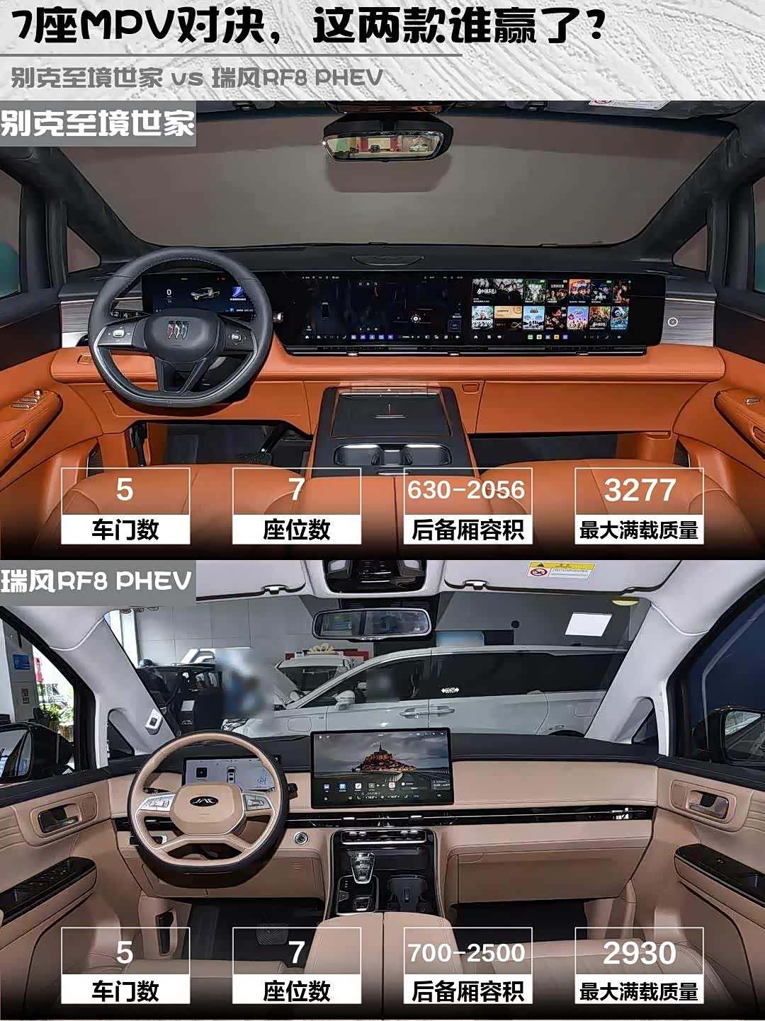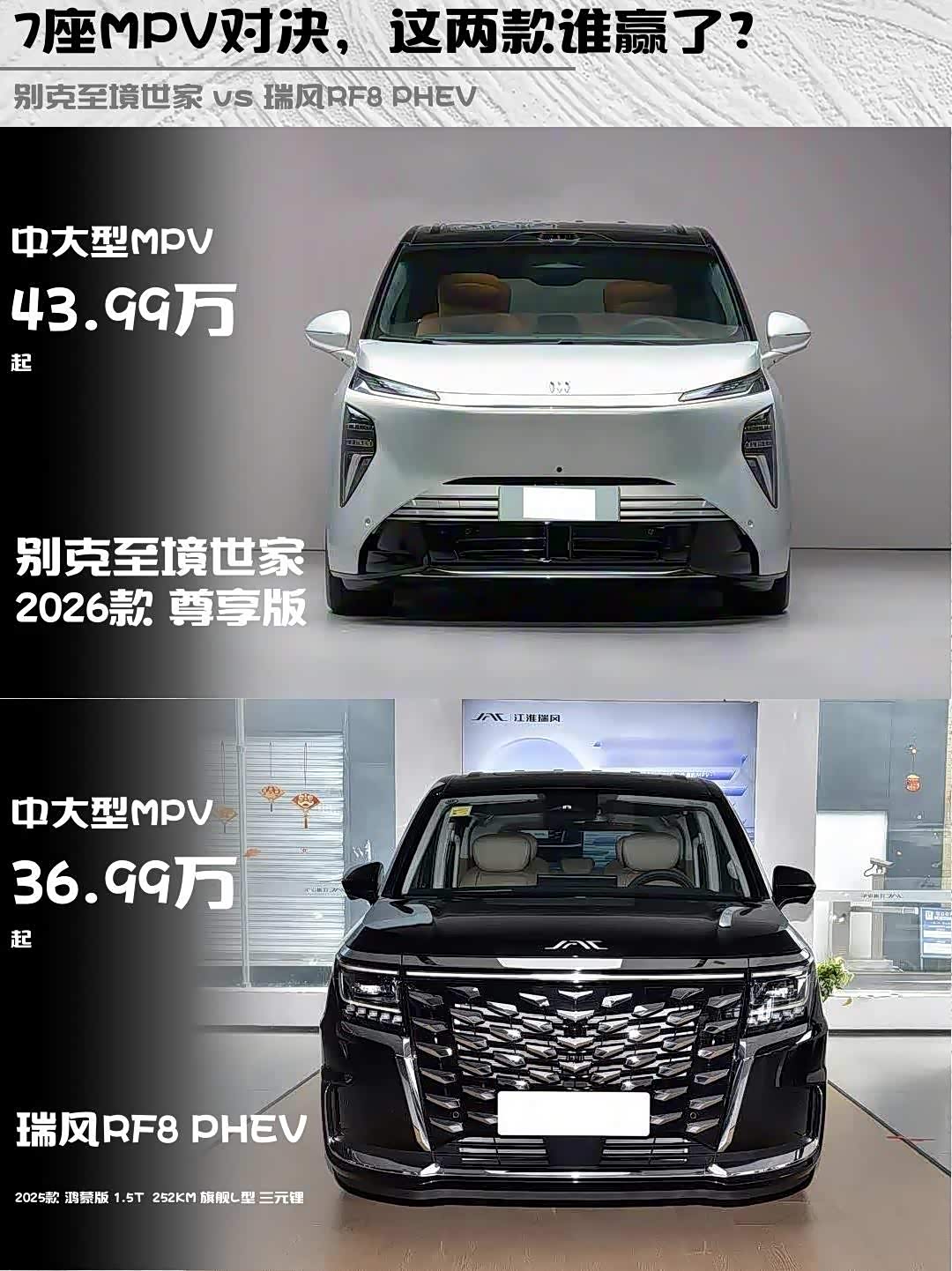 车家号·0浏览·2026-01-22 08:34 · 北京最近在纠结选MPV的朋友看过来!今天深度对比两款热门插混MPV——别克至境世家2026款尊享版和 瑞风RF8 PHEV(参数|询价) 2025款鸿蒙版,看完这篇你就知道哪款更适合你!✨