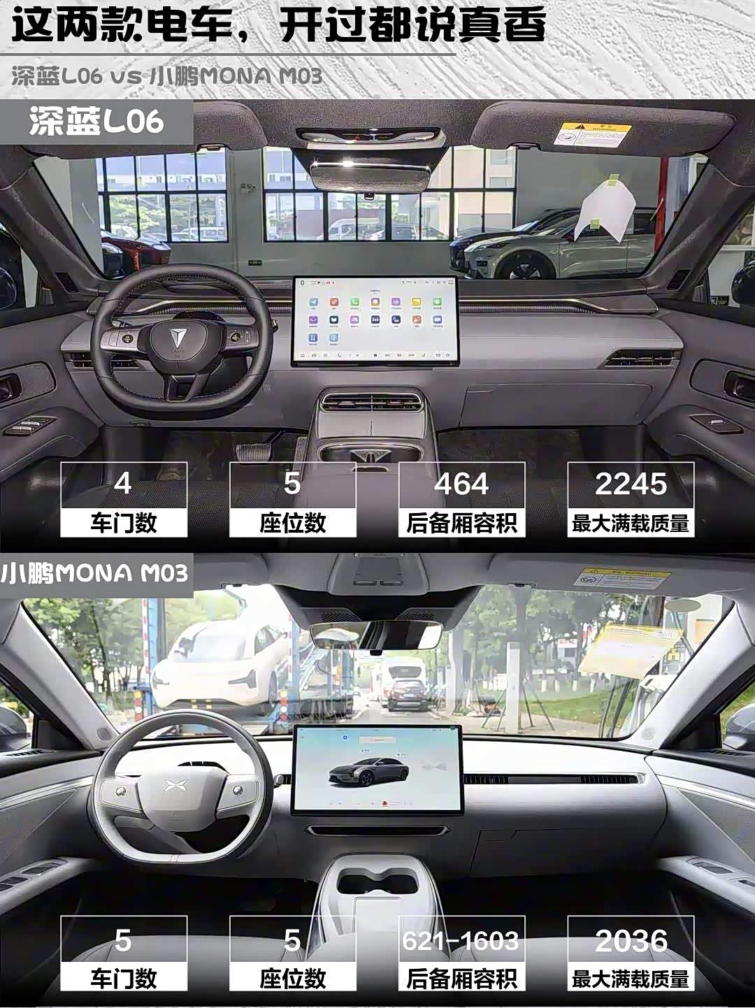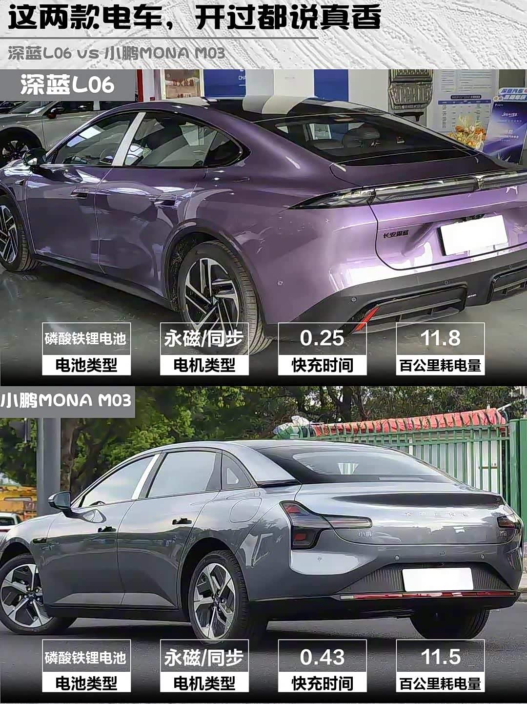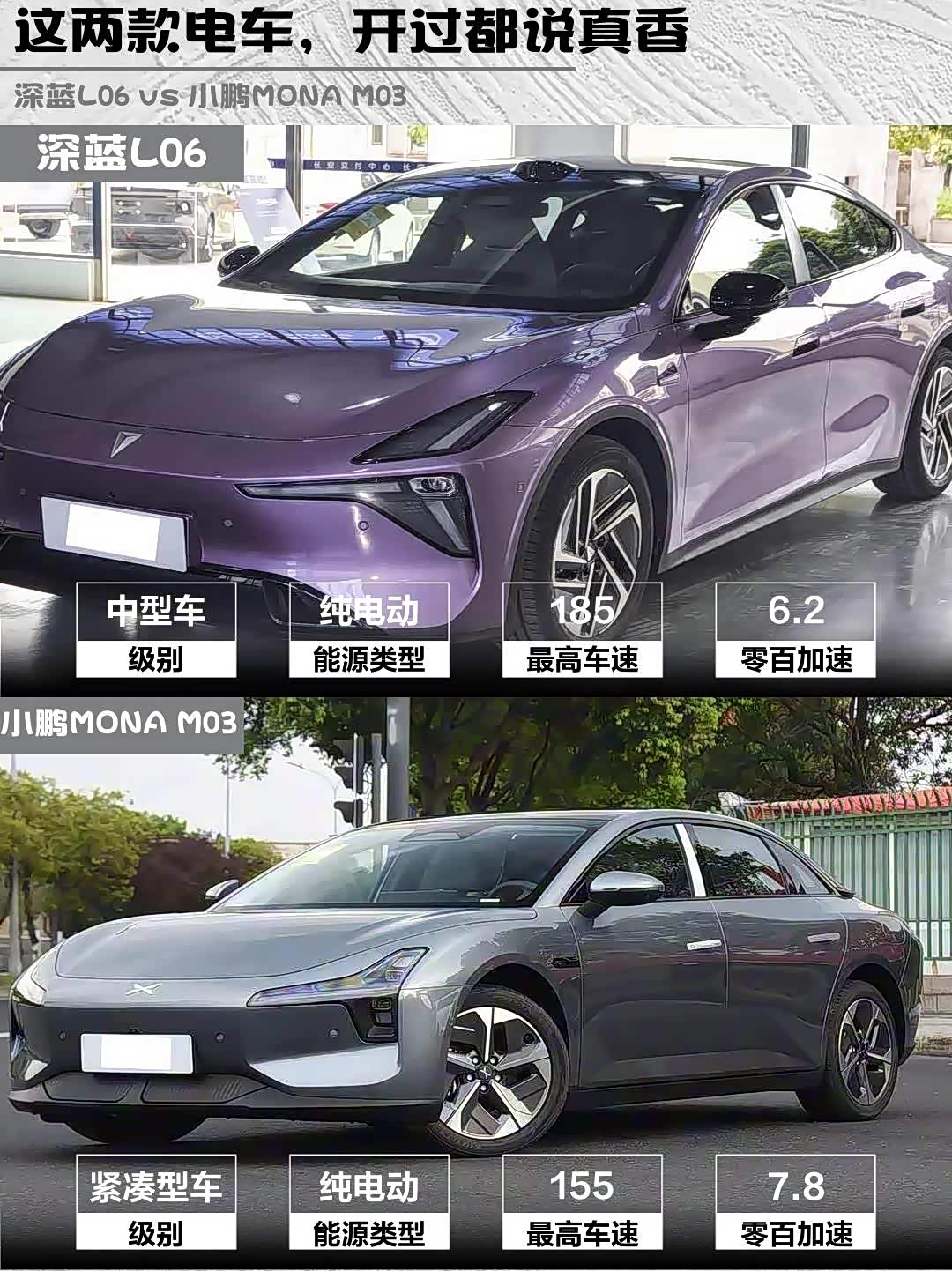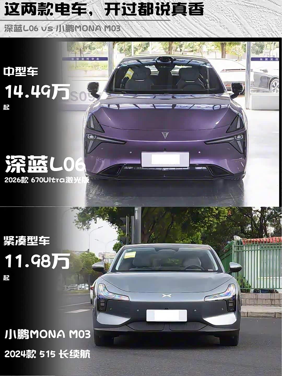 车家号·0浏览·2026-01-22 08:35 · 北京最近试驾了两款热门纯电轿跑——深蓝L06 2026款 670Ultra激光版和 小鹏MONA M03(参数|询价) 2024款 515长续航,发现这两台车完全是两种性格!🔥