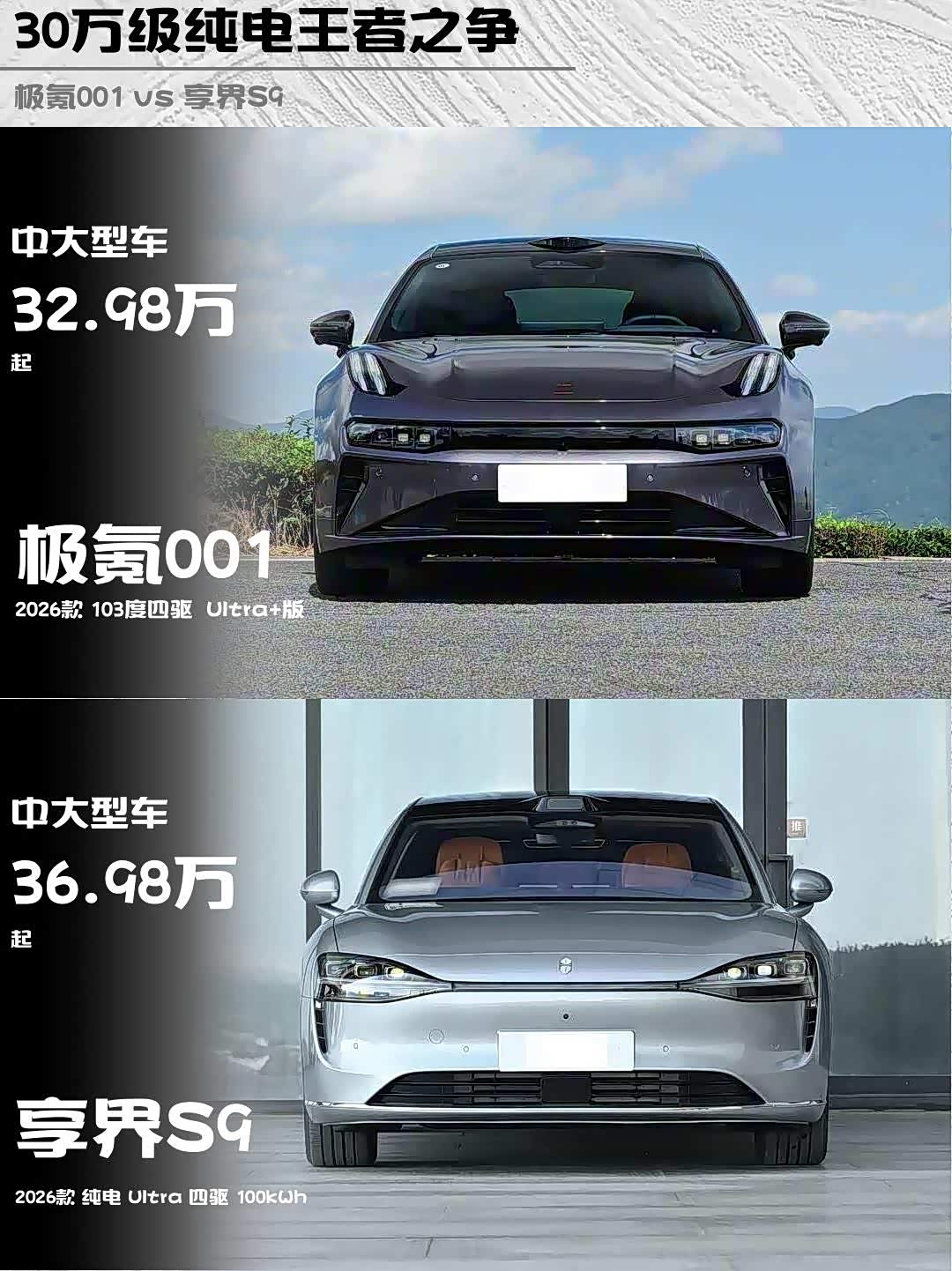 最近深度试驾了两台30万级纯电猛兽—— 极氪001(参数|询价) 2026款103度四驱Ultra+版和享界S9 2026款纯电Ultra四驱100kWh,作为技术控必须来波硬核对比!🔥