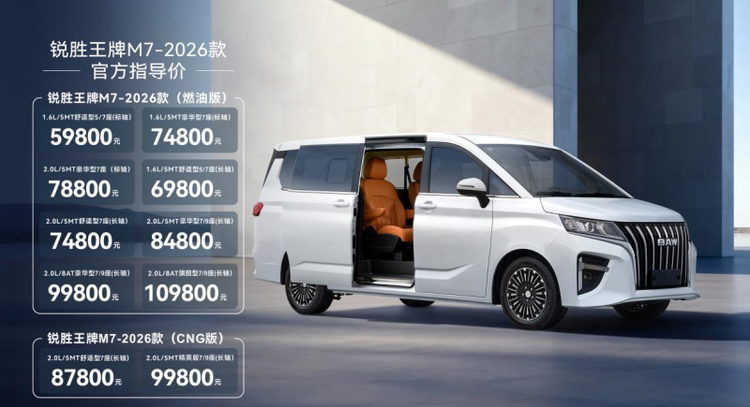 在竞争白热化的MPV市场,年度改款往往是“微调”的代名词。但2026款锐胜王牌M7却打破了这一惯例,进行了一次诚意十足的“价值重构”。它不是简单堆砌配置,而是精准切入用户日常使用中的每一个痛点,实现了产品力的精准跃升。