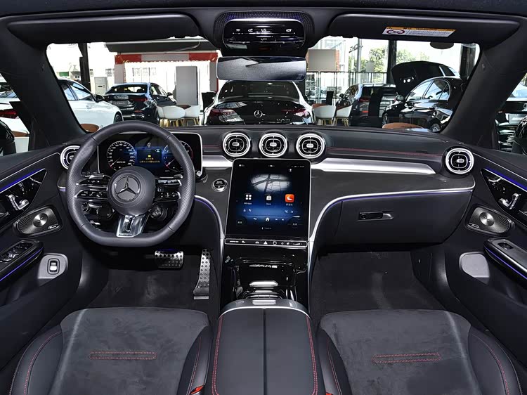 进入车内,座舱延续家族布局,豪华与运动氛围平衡得当。AMG扁平式方向盘,集成触控面板与换挡拨片,一键切换驾驶模式。12.3英寸全数字仪表盘+11.9英寸悬浮中控屏,搭载第三代MBUX智能系统与高通骁龙8295芯片,运算流畅,支持AR实景导航与OTA升级。空间表现超出预期,后排并非摆设,座椅支持60:40比例放倒,软顶收起后行李厢容积达375升,搭配自动分隔装置,兼顾浪漫与实用。