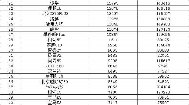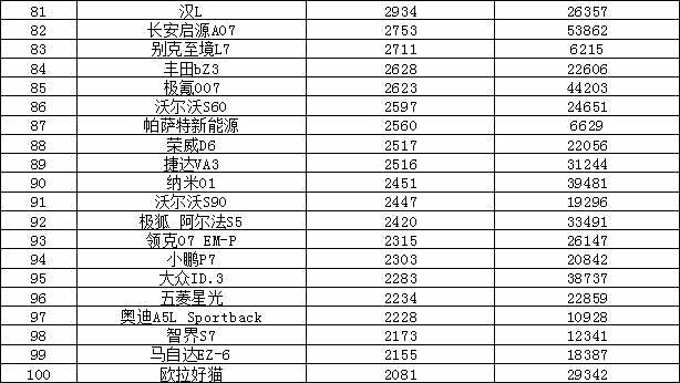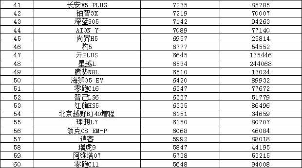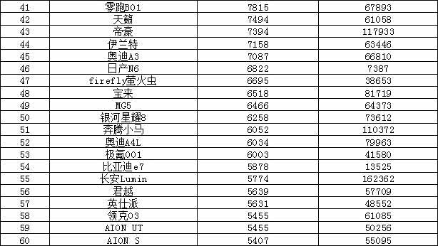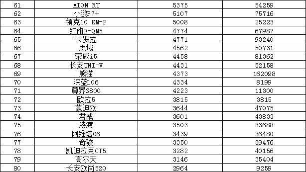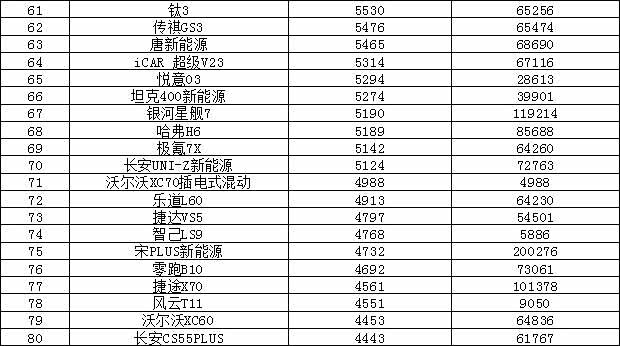 秦PLUS销量创下今年单月新高,销量领衔,而海鸥销量有所下滑,跌出前十。BBA中仅有 奥迪A6L(参数|询价)上榜。另外我们可以看到极狐T1上市几个月销量逐渐攀升,有望更进一步。