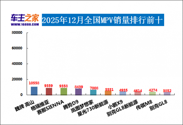 2025年12月MPV销量排行前十(单位:辆)