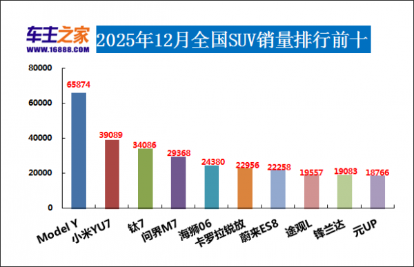 2025年12月SUV销量排行前十(单位:辆)