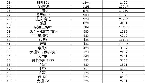2025年12月MPV销量排行榜(单位:辆)