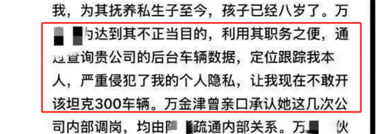 不仅如此,男子还发现妻子利用在长城汽车的职务之便,通过公司后台车辆数据定位跟踪他,了解他的一举一动。而妻子万某某后来也亲口承认,她在公司内部的几次调岗,都是陈X帮忙疏通的关系。