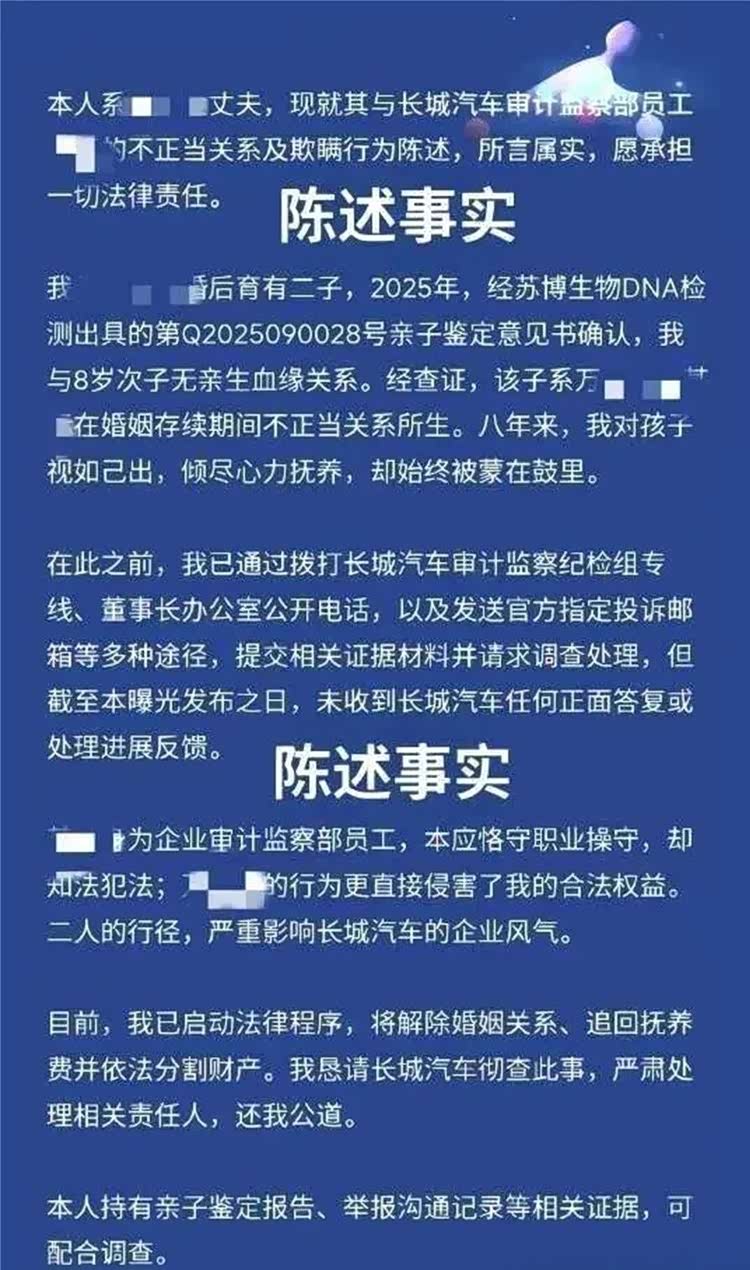 总的来说,这起长城汽车高管出轨生子、滥用职权的事件,从家庭伦理的崩塌,到企业管理的失序,再到品牌形象的受损,影响深远。