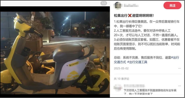 共享电单车原本就被戏称为“弯腰捡钢镚”的生意。尽管松果出行通过自建工厂提升了车辆耐用性,但还是很难摆脱电力成本、物流调度和充电闲置等压力。更棘手的是,电单车活动范围更大,又加剧了调度难度,导致运维成本居高不下。