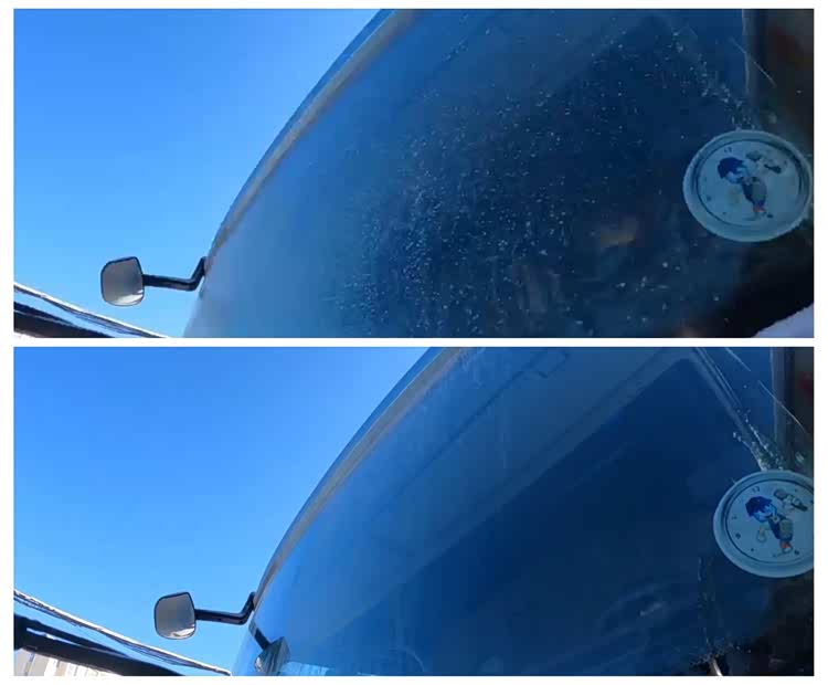 车窗除冰前后对比
