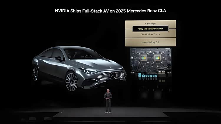 另一边,英伟达带来了全球首个开源并具有推理能力的Alpamayo端到端大模型。Alpamayo模型的训练是由Cosmos完成,Cosmos神奇之处在于它拥有“用算力转换数据”的能力,它能根据指令自动生成符合现实物理逻辑的环境数据,例如:暴雪、路面坍塌等极端情况,因此完全不用开着采集车满世界采集数据了。这套英伟达全栈技术将首搭在梅赛德斯-奔驰全新CLA中,并将于今年第一季度在美国上路。