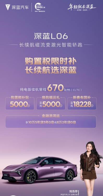 此次政策覆盖 深蓝S05(参数|询价)、S07、L06、L07四款长续航车型。企业宣布推出购置税限时补贴,至高10000元,并可叠加换购礼、新春国补红包等现金优惠。同时提供“金融添鸿运”方案,至高可享5年0息贷款。