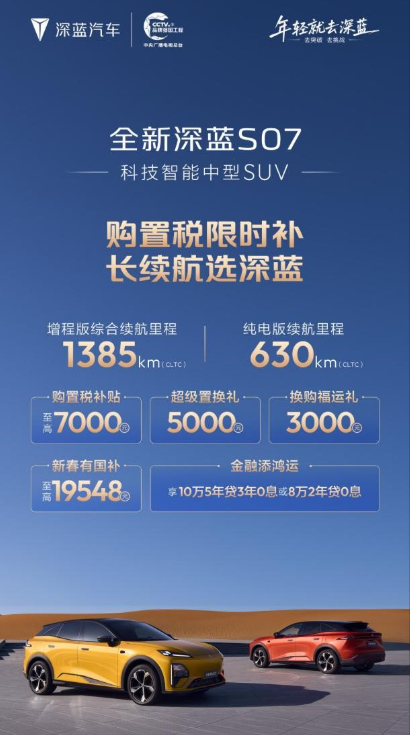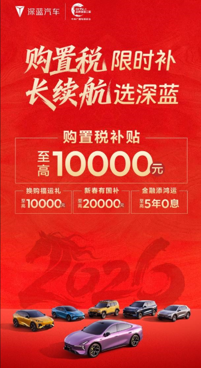 深蓝汽车推新春购车福利 全系享购置税补贴