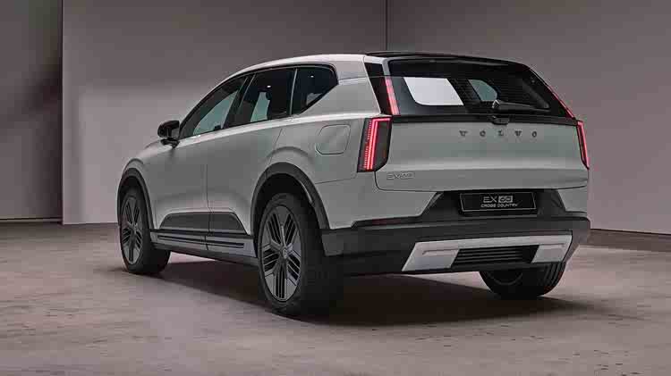沃尔沃EX60车长4.80米、车宽1.91米、车高1.64米,轴距达到2.97米。随着新车一同首发的,还有Cross Country版本,它贵3000欧元,提供高出20毫米的离地间隙;如配备空气悬挂,在需要时还可额外再升高20毫米。在更高车速下,底盘会为了降低空气阻力而让车身重新贴近路面。Cross Country的轮距略宽,轮拱更为外扩。车头与车尾配有拉丝铝材质的底部护板,为越野外观画龙点睛。
