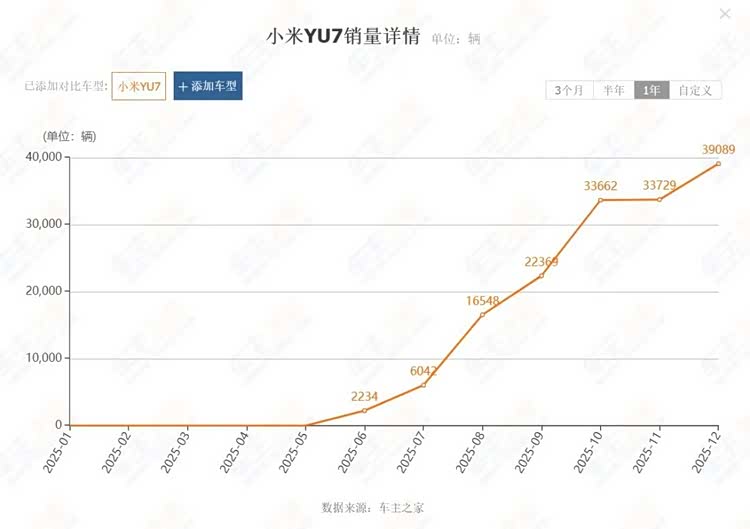 从上市初期的表现来看,两款车都展现出强劲的势头。小米YU7延续了SU7的“顶流”体质,自2025年6月底上市后销量快速爬升,截至12月底累计交付已突破15万辆,并连续三个月月销稳居3万辆以上。