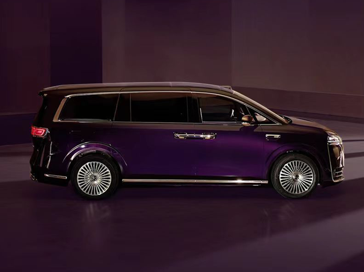侧面与尾部:平直的车窗线条和隐藏式B、C、D柱设计,营造出悬浮式车顶的视觉效果。侧滑门轨道被巧妙隐藏,保证了侧面的整洁感。尾部同样采用贯穿式尾灯,造型简洁,与车头形成呼应。多处镀铬装饰条的运用,强调了其豪华定位。