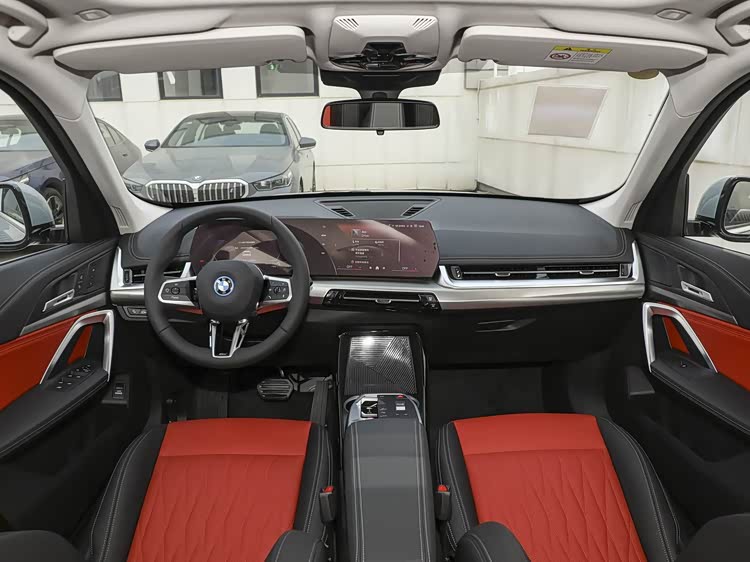 进入车内,2026款宝马iX1延续家族最新内饰设计语言,以驾驶者为中心的座舱布局搭配精致工艺,兼顾豪华质感与操作便利性。全系标配一体式悬浮曲面屏,由10.25英寸全液晶仪表与10.7英寸中控屏组成,内置最新iDrive 8.5操作系统,语音控制、手势控制等功能一应俱全,操作流畅度与智能化程度大幅提升。空间表现是新车核心优势之一,采用5门5座布局,空间利用率出色。身高185cm的体验者坐在前排,头部仍有2拳余量;后排头部空间1拳、腿部空间2拳,中央鼓包相较于燃油版X1大幅降低,中间乘客双脚放置更舒适。后备箱常规容积490升,后排座椅按4:2:4比例放倒后,容积扩展至1600升。