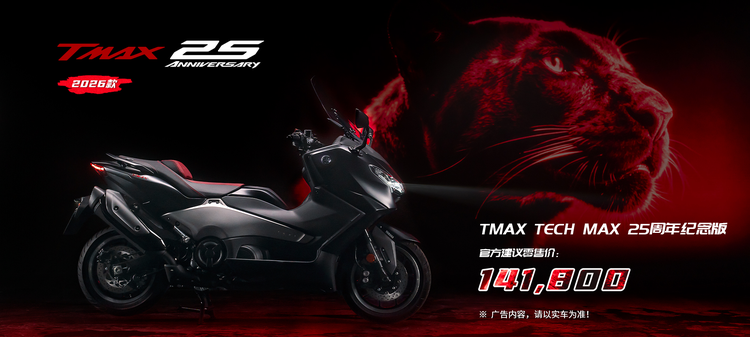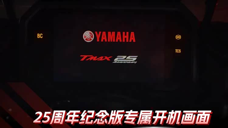 与此同时,它还采用了全新设计后的前脸,双头灯与示宽灯的结合让其会更为动感,另外,该版本还融入了TMAX压印靠背、无级可调电动风挡以及25周年纪念版专属开机动画。