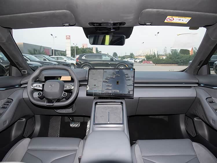 坐进车内,小鹏P7的内饰风格可以用“极简科技风”形容。中控台几乎看不到实体按键,15.6英寸可调节中控屏搭配8.8英寸仪表盘,再加上AR-HUD抬头显示,信息展示足够清晰。但初次上手需要适应——比如空调调节、座椅功能等操作都集成在屏幕里,开车时盲操略显不便。