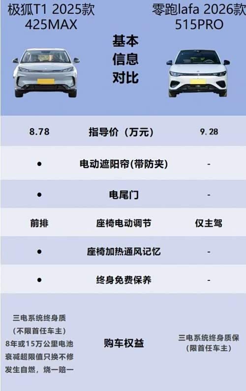 在A0级纯电市场,极狐T1和零跑lafa5 15pro都是备受年轻人关注的车型。两款车各有亮点,但从实际用车需求出发,极狐T1在空间、续航、配置等多个维度都展现出了不俗的竞争力。今天就来好好唠唠这两款车,用数据说话,看看极狐T1到底藏着多少惊喜。