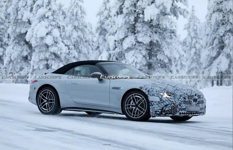 近日,我们从相关渠道获取到了一组新款奔驰AMG SL车型谍照。自2021年秋季推出以来,SL系列经过数年市场检验,本次改款主要在外观和动力组合上做出调整。前脸将采用奔驰最新家族式星徽大灯设计,搭配尺寸增大的进气格栅,整体视觉上更具层次感。中期改款的设计方向延续了现款风格,但在细节上做了针对性优化,以满足市场对运动感和科技感的需求。