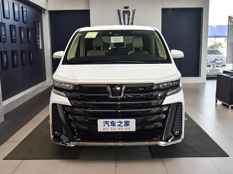 我们首先来看新车的外观设计方面,新车摒弃传统MPV的圆润感,采用解构主义设计语言打造前脸,气场极具侵略性。大尺寸进气格栅以多层镀铬饰条分层勾勒,内部蜂窝纹理精致立体,搭配居中的丰田车标,在威严中透着运动张力。核心亮点为分体式LED大灯组,上层锐利日行灯呈獠牙状,下层透镜大灯深邃有神,点亮后形成独特视觉签名,夜间辨识度拉满。前包围配备银色金属下护板,两侧雾灯区域采用蜂窝纹理装饰,与格栅呼应强化战斗气息,整体线条凌厉尖锐,将机甲风格与豪华质感融合,彻底摆脱“保姆车”的刻板印象,彰显独树一帜的设计格调。