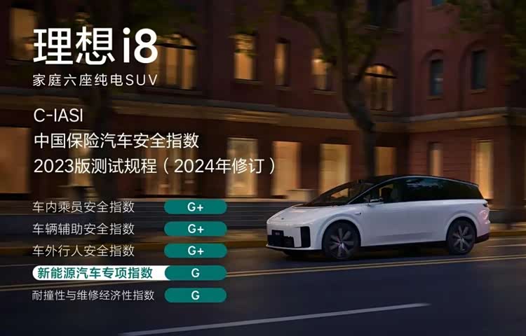 中保研C-IASI作为国内权威的汽车安全测评体系,测评标准一直以严格著称。此次新版规程难度再度提升,新增“新能源汽车专项指数”考核。理想i8在车内乘员安全、车辆辅助安全指数、车外行人安全指数获顶级G+评级,新能源专项指数也获最高评级G,并获得新能源安全性测评满分成绩,成为首批通过新规的新能源车型。