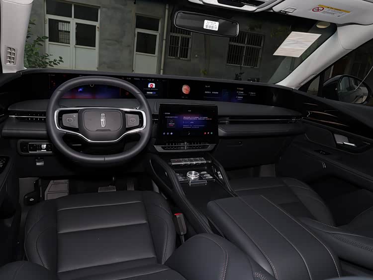 进入车内,座舱内部遵循林肯“地平线原则”设计,以横向直线条拉伸视觉宽度,营造出通透开阔的氛围。大面积Nappa真皮、钢琴漆面板与金属饰板搭配,部分高配车型还配备3D效果铝制饰板与麂皮绒座椅,质感越级。双辐式真皮方向盘支持加热功能,按键布局合理,操作便捷,标志性的钢琴按键式换挡机构既优雅又节省中控空间。48英寸环抱式曲面双联屏(由两块23.6英寸大屏组成)为全系标配,储物布局合理,门板储物格、中央扶手箱容积充足,常规后备厢容积达739L,后排座椅放倒后可拓展至1473L。