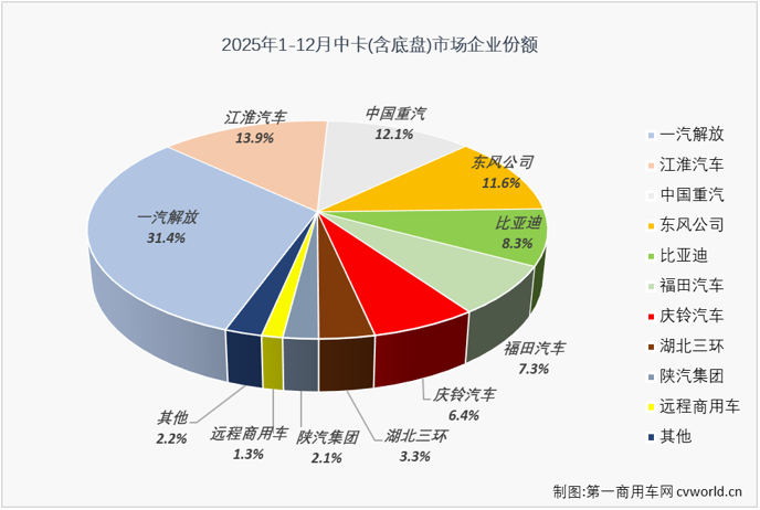 2025年累销降2%,解放夺冠,比亚迪/三环/陕汽/远程翻倍涨