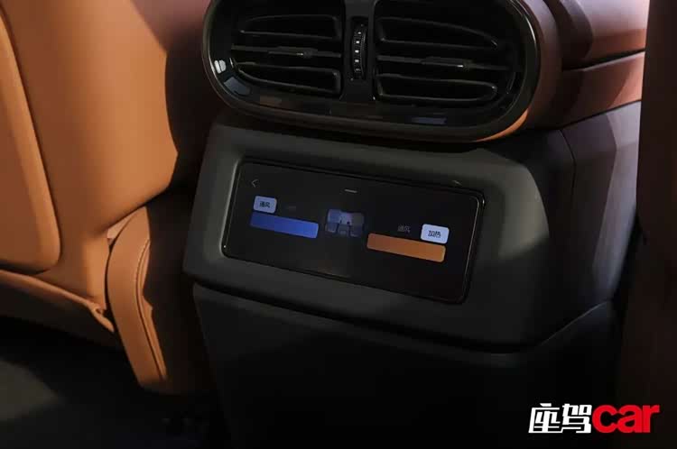 进入车内,米黄色真皮包裹的空间与此起彼伏闪烁的氛围灯确实足够雍容华贵,但我必须承认,这种设计有些用力过猛了,像是一个刚刚事业有成的人急于向别人证明自己的财富实力一样。这一点让我略有不适,但这并不妨碍其深受中年用户喜爱。中控区域搭载了中央12.8英寸星河曲面屏、副驾23.6英寸贯穿式长屏、等效70英寸的AR-HUD屏,配合后排两块12.8英寸悬浮式多媒体屏,共同组成五个屏幕的矩阵。五个屏幕之间,既可以整齐划一地联动,做到信息的同步显示,也可独立运行、互不打扰。70英寸AR-HUD是对传统HUD的跨越式创新,它将抬头显示从平面图像升级到3D立体图像,同时将车辆与道路信息实时投射至前方道路,方便驾驶者及时了解车辆状况和地图信息,提高效率的同时也减少因低头查看仪表而产生的安全隐患。