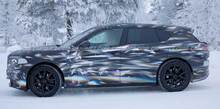 从侧面我们能够发现轮毂尺寸依然达到了20英寸,并且保留了机械门把手设计,侧面尺寸也明显进行了缩小!由于是一款纯电车型,整车的重心比较低,所以说离地间隙相对一般,但是我们推测大概率是搭载了空气悬架功能的。