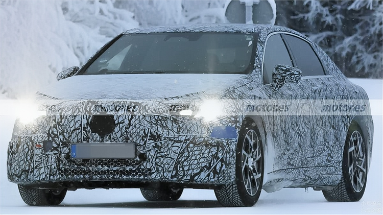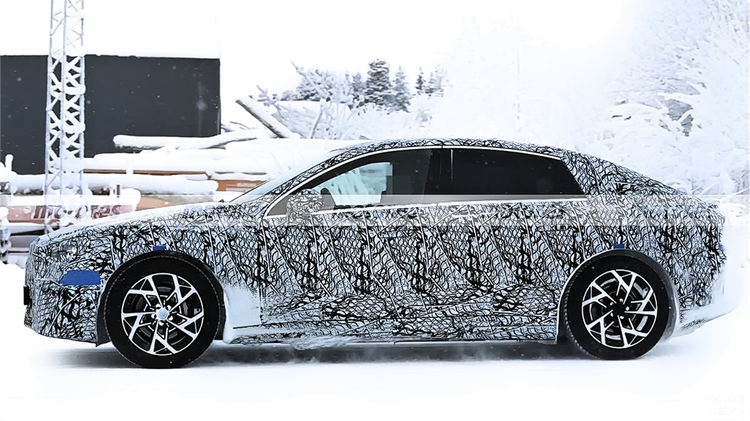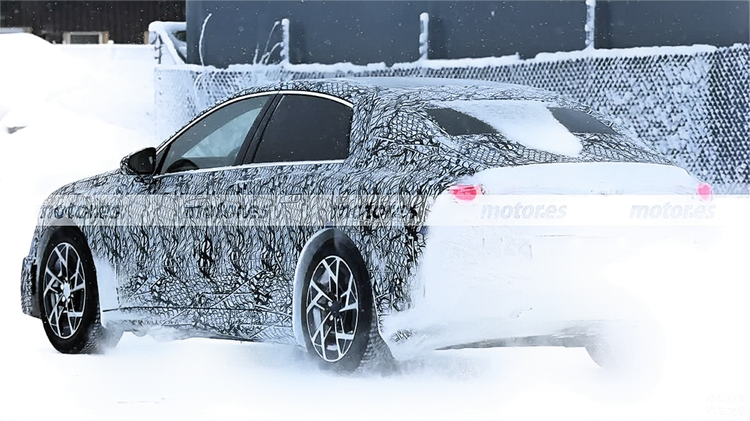 车尾部分,因为伪装和天气原因可分析的信息不多,但微微上翘的小鸭尾扰流板和内凹的牌照框,让屁股看起来不那么沉闷。尾灯组虽然没完全露脸,但大概率也是贯穿式设计,且内部光源同样会呼应“三叉星”元素。