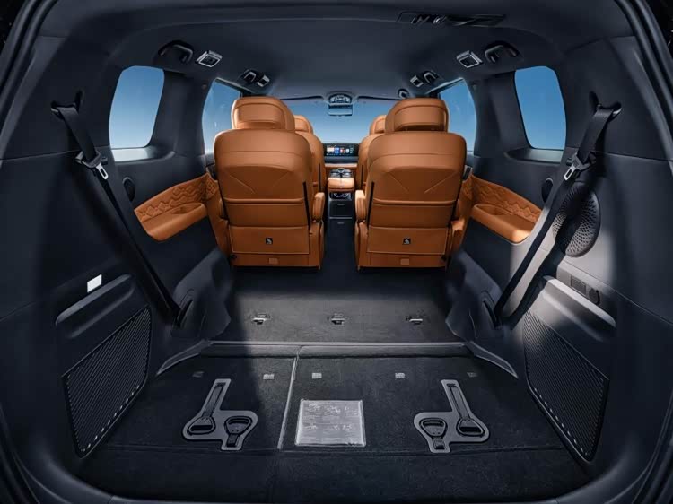 空间魔术师:拥有5230*1920*1820大尺寸车身,独创第三排下沉式设计。2人模式下座椅完全收纳至地板下,后备箱容积拓展至 2616L(秒变移动大平层。