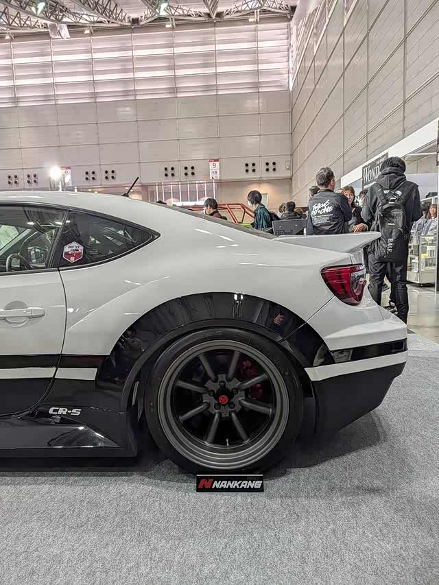 我没说错吧,你也没看错吧,这车头确实是一辆完完整整的AE86,不过到了侧面就发现端倪了,再走到车尾,终于真相大白了,原来是一辆 丰田GT86(参数|询价)魔改,还带了宽体。这样子把外观移植确实比贴豆腐店拉花更有创意!