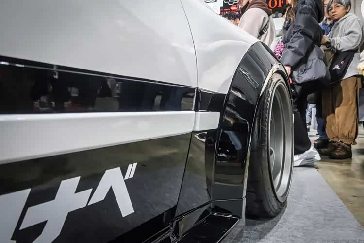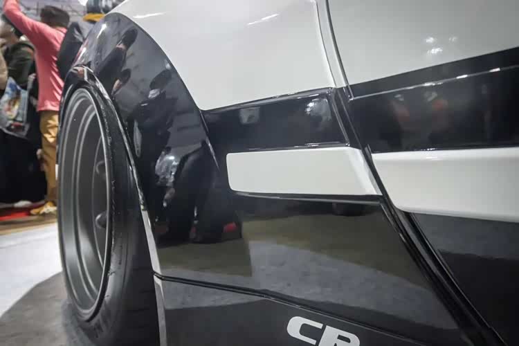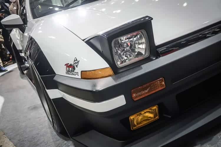 不仅如此,车身侧面也高度还原了AE86的饰条细节,融合GT86车身线条重新设计的宽体叶子板和包围套件,覆盖在下面是定制的大抛边watanabe轮毂,在黑白拉花涂装的搭配下,再现经典熊猫配色AE86的神态。