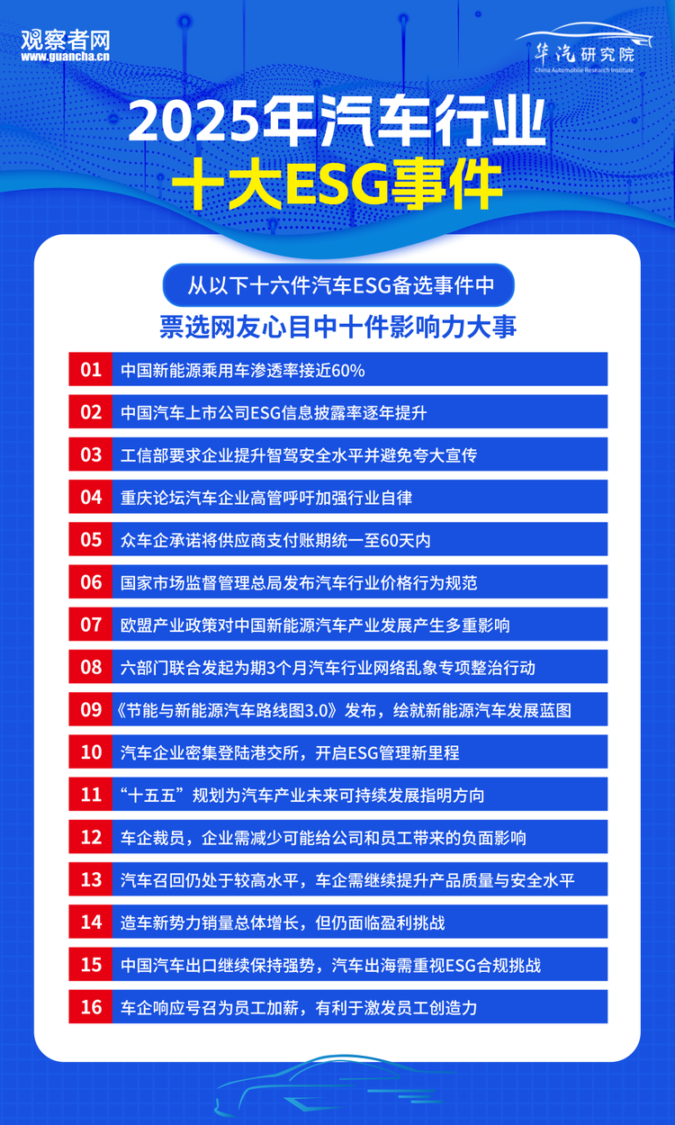 投票主题:哪些是您心目中的“2025年中国汽车ESG十大事件”