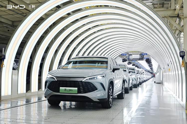 (比亚迪郑州工厂生产的新能源车下线)
