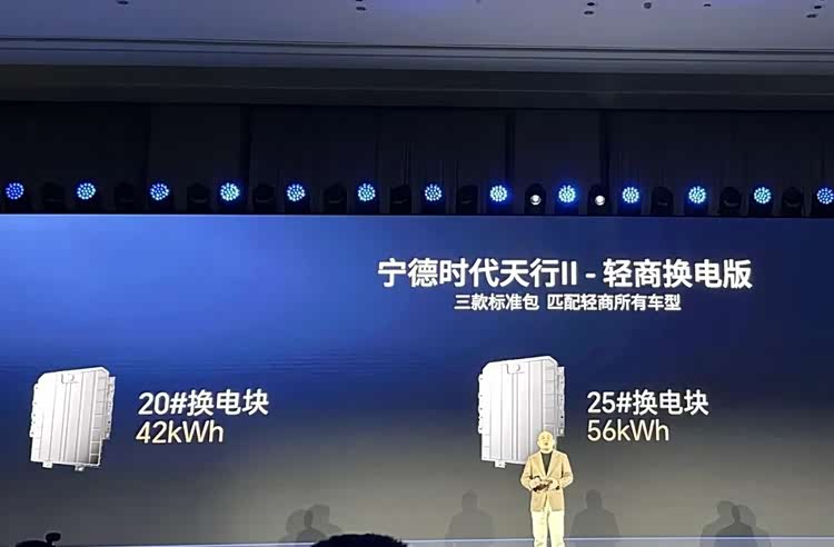 除系列电池产品与智慧软件外,宁德时代还发布了天行II轻商换电版解决方案,提供20#-42kWh、25#-56kWh、35#-81kWh三款标准电池包,适配全系轻商车型,目前已有超20款车型落地搭载。换电模式通过“车电分离”降低用户初始购车成本,提升资产灵活性。