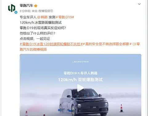 车家号·0浏览·2026-01-23 10:49 · 北京【联阅智驾 新车资讯】2026年1月22日,零跑汽车宣布旗下旗舰中大型SUV D19,成功完成全球首次冰雪极端场景同侧双轮爆胎实测,填补行业相关测试空白。测试联合知名车评人韩路,在内蒙古牙克石冬季基地开展,零下30℃低温叠加冰雪路况,以“地狱难度”验证车辆极限安全,迅速登上热搜。