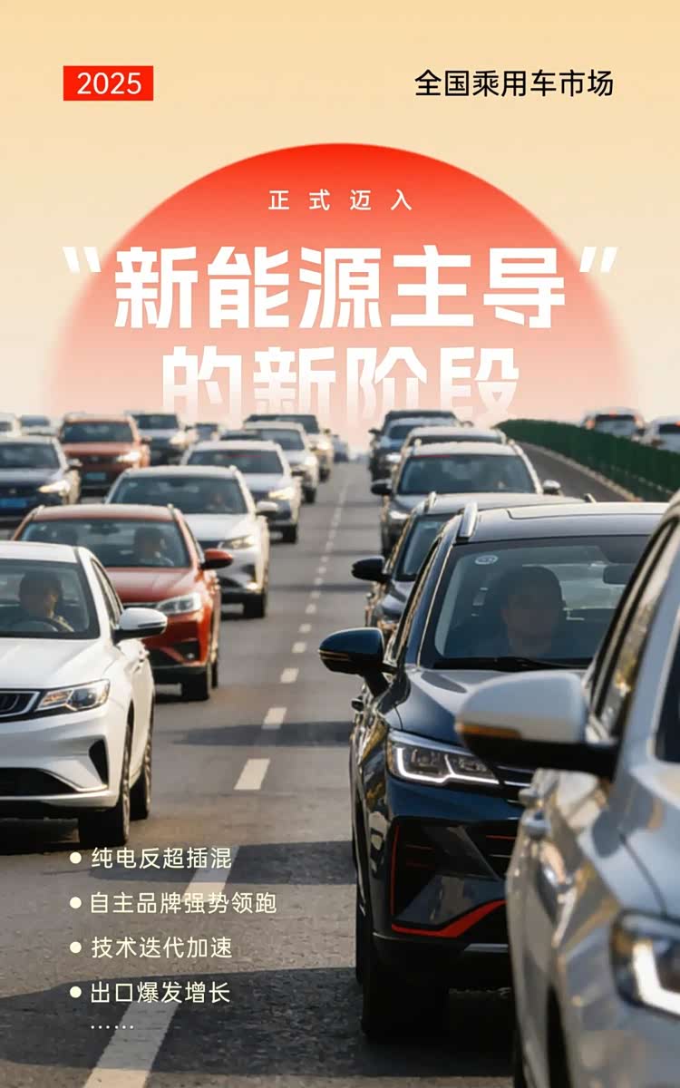 在政策切换、成本波动与技术革新交织等多方面因素的影响下,2025 年全国乘用车市场正式迈入“新能源主导”的新阶段,纯电反超插混与自主强势领跑成为全年最亮眼的标签。