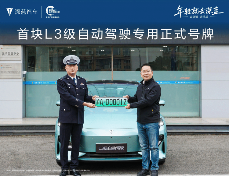 ○ 深蓝SL03(参数|询价) 获得 L3 级自动驾驶专用号牌