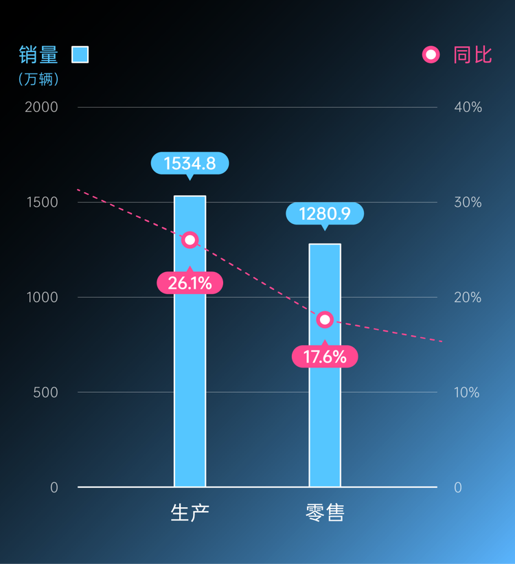 2025 年新能源乘用车市场产销两旺,全年累计生产 1,534.8 万辆,同比增长26.1%;全年累计零售 1280.9 万辆,同比增长 17.6%。市场结构的变化,集中体现在纯电车型对插混车型的全面反超。