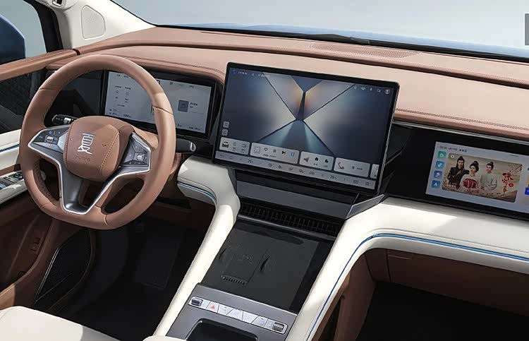 内饰方面,比亚迪夏配备了双辐式方向盘和怀挡式电子换挡机构,中控台搭载12.3英寸全液晶仪表与15.6英寸自适应旋转悬浮Pad。